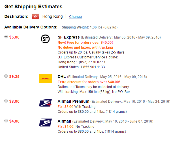 There are other shipping options such as DHL, UPS, and much more for different countries. Each country has different laws and regulations about buying products from other countries. iHerb will give you useful information when you choose your shipping country.
